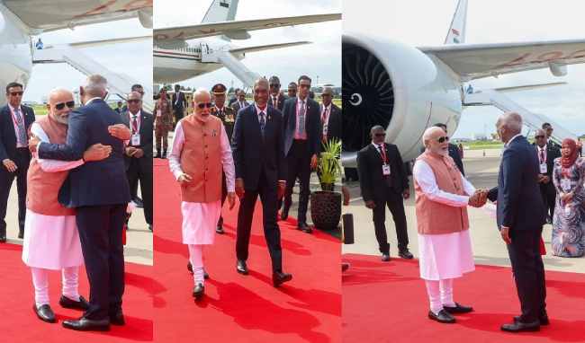 प्रधानमंत्री मोदी दो दिवसीय दौरे पर मालदीव पहुंचे हैं और वह मालदीव के स्वतंत्रता दिवस समारोह के मुख्य अतिथि भी होंगे। स्वागत के दौरान भारतीय समुदाय ने वंदे मातरम के नारे लगाए। यह दर्शाता है कि मुइज्जू की ‘बायकॉट इंडिया’ नीति अब ‘वेलकम मोदी’ में बदल चुकी है।