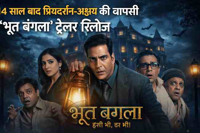करीब 14 साल के लंबे अंतराल के बाद डायरेक्टर प्रियदर्शन और सुपरस्टार अक्षय कुमार एक बार फिर साथ नजर आने वाले हैं। दोनों की जोड़ी हॉरर-कॉमेडी फिल्म ‘भूत बंगला’ के जरिए बड़े पर्दे पर वापसी कर रही है। फिल्म को लेकर पहले से ही जबरदस्त चर्चा थी और अब मेकर्स ने 6 अप्रैल, सोमवार को इसका बहुप्रतीक्षित ट्रेलर रिलीज कर दिया है। ट्रेलर सामने आते ही सोशल मीडिया पर तेजी से वायरल हो रहा है।